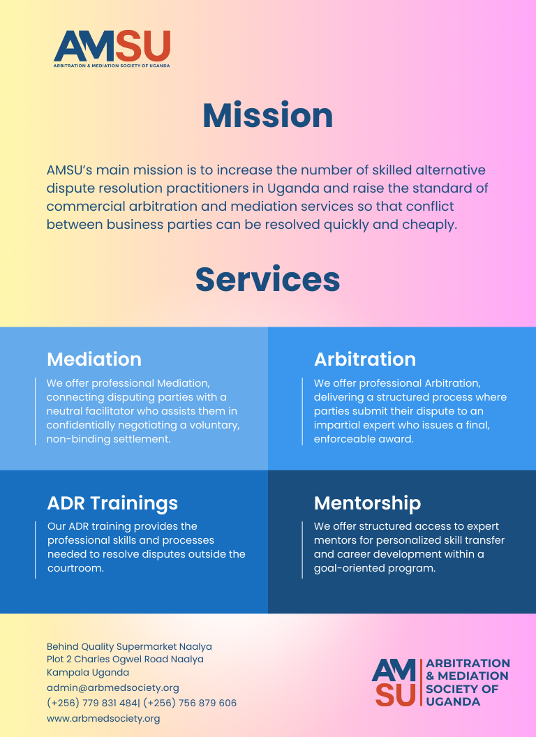 For clients, mediation is extremely attractive because mediators can handle disputes quickly, in the most cost-effective way and in a confidential manner. It is no surprise that many civil courts worldwide like in Uganda are now making it a requirement for parties to engage in mediation process before any court proceedings hence creating more jobs for trained mediators.